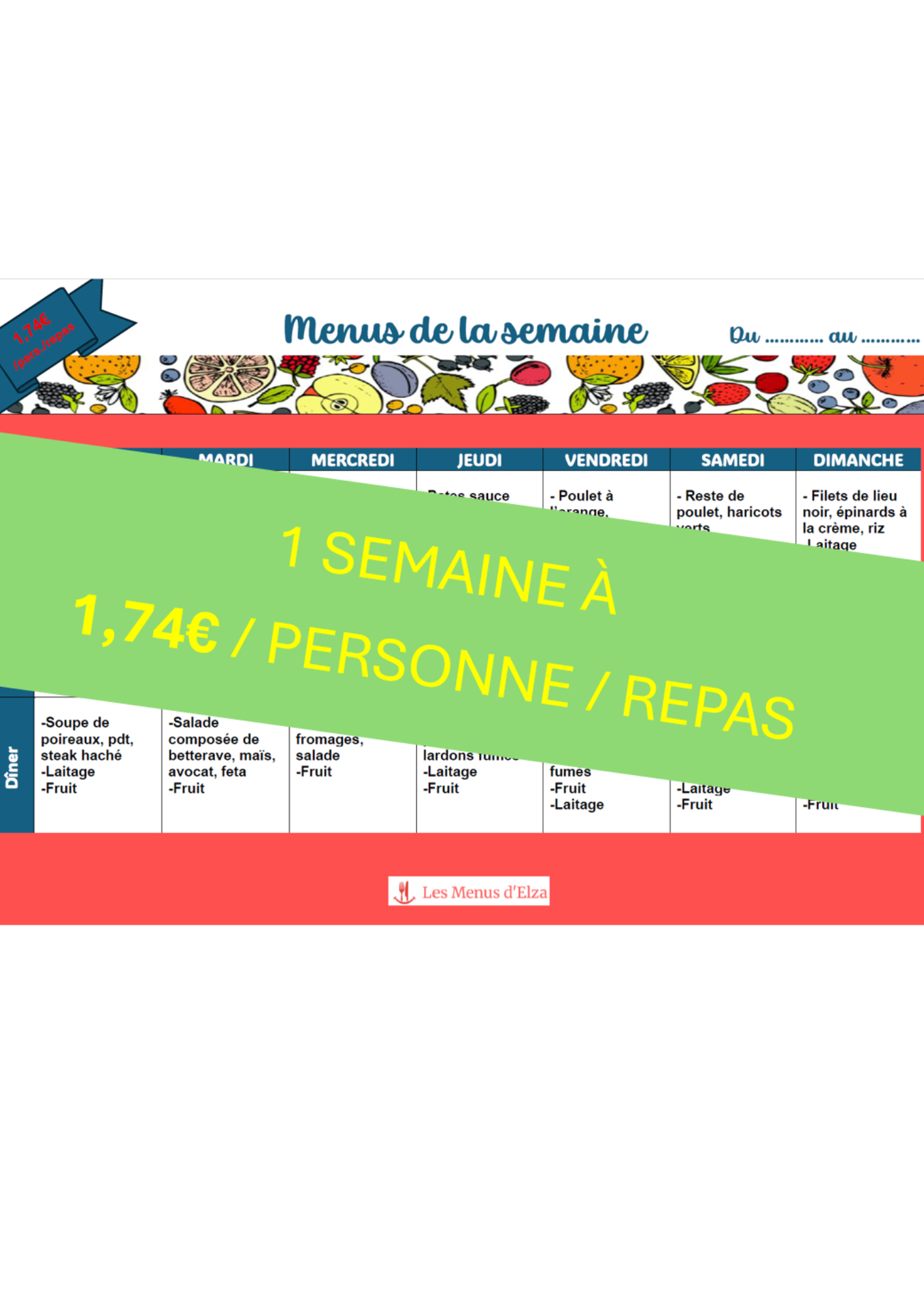 - Menus complets pour 1 semaine (déjeuner, dîner, gouter)